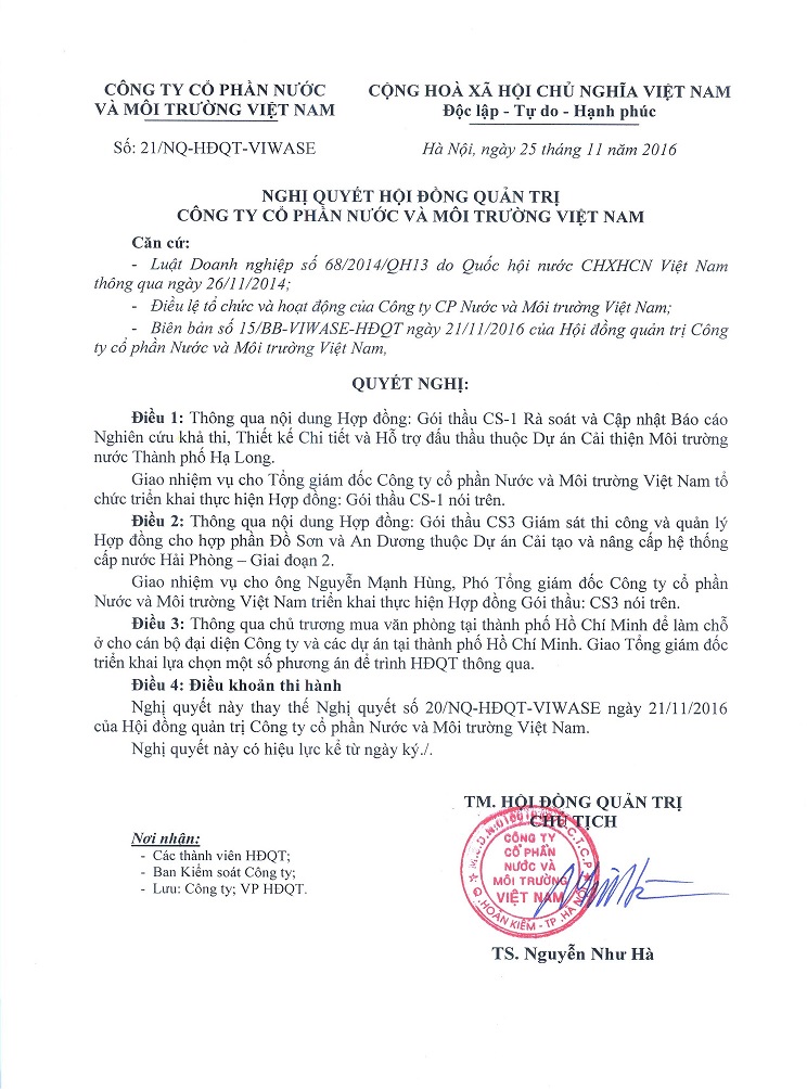 - Nghị quyết 03/2025/NQ-VIWASE-HĐQT về Chi trả cổ tức còn lại năm 2024